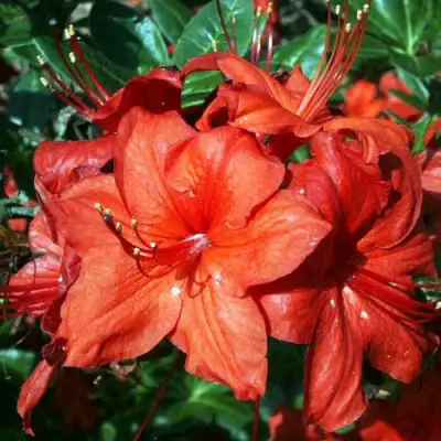 Азалия Долоросо не только красива, но и щедро цветет. Цветение начинается в конце мая и продолжается до начала июня, наполняя сад изысканными ярко-красными воронковидными цветами. Соцветия крупные — 7 см в высоту и 13 см в ширину. Каждое соцветие состоит из 7-10 крупных цветов, которые поражают своей нежностью и очень слабым, но приятным ароматом.
