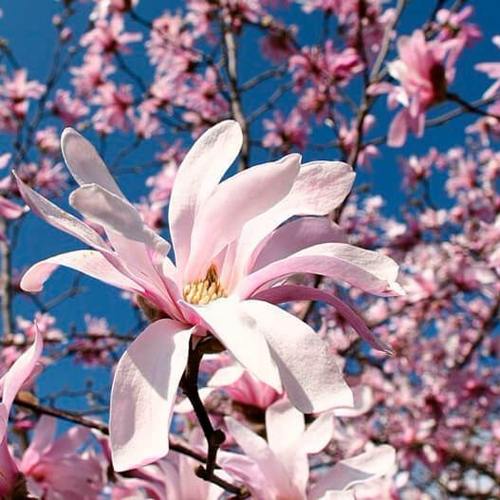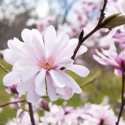 Магнолия Розея великолепно смотрится в виде солитера. Для этого можно посадить у ее подножия красивый ковер из луковичных растений, таких как нарциссы, мускари, пролески, весенники зимующие или почвопокровные многолетники, такие как пупочник весенний, кавказская незабудка, герань крупнокорневищная или живучка. Морозостойкость у магнолии Розея высокая, выдерживает температуру до -29°C.