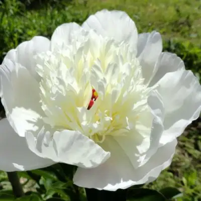 Основная окраска цветка – белая, но в центре можно заметить легкий зеленоватый оттенок, что придаёт каждому лепестку неповторимую нежность. Легкий и приятный аромат делает этот пион идеальным для создания букетов и композиций.