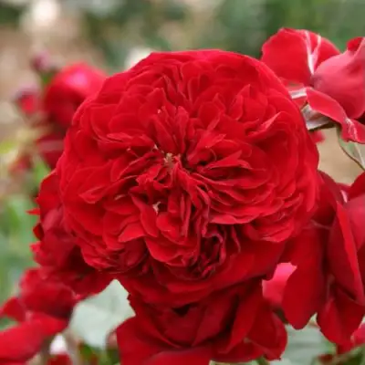 Цветки розы "Красная Шапочка" обладают ярко-красной окраской и являются красивыми и привлекательными. Они имеют чашевидную форму и средний размер диаметром от 6 до 9 см. Лепестки густо махровые и их количество достигает 50 штук.