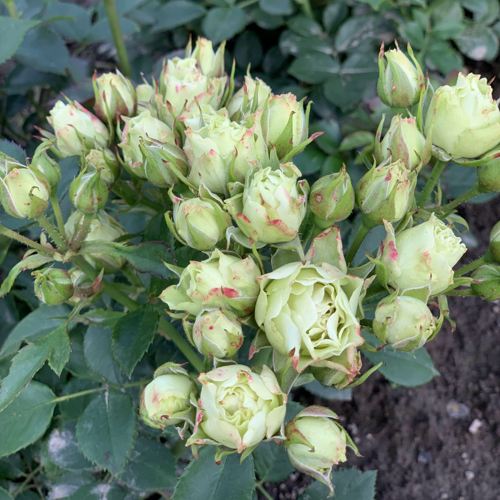 Саженцы розы "Лувиана" впечатляют своей уникальной окраской цветов, варьирующейся от лимонного и салатового до насыщенного зелёного оттенков. Основной цвет – лимонный и зеленый, придают ей изысканности и шарма, прекрасно сочетаются с любыми садовыми растениями. Средние по размеру цветки, диаметром до 5-6 см, собраны в элегантные соцветия, каждое из которых насчитывает от 5 до 10 цветков. Лёгкий фруктовый аромат этих роз слабой интенсивности создаёт приятную атмосферу уюта и гармонии.