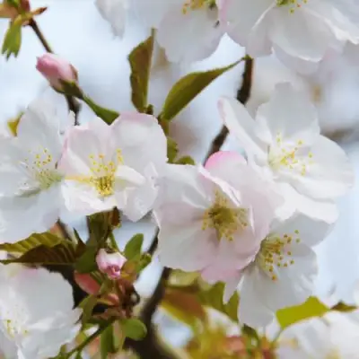 Окаме — одна из самых раноцветущих декоративных вишен. С начала апреля по середину весны это дерево усаживается обильными бледно-розовыми чашеобразными цветами, которые издалека создают эффект облака нежности. Эти цветы привлекают не только глаз, но и пчел, превращая вишню в ценное медоносное растение. После завершения цветения распускаются овальные, слегка опушенные листья. Сначала они имеют бронзовый оттенок, постепенно превращающегося в насыщенный зеленый к осени, когда листву охватывает потрясающий оранжево-красный цвет, словно огонь на фоне падающего света. Кора у этого сорта декоративной вишни гладкая и темно-бурая, что придаёт дереву дополнительный шарм в любое время года.