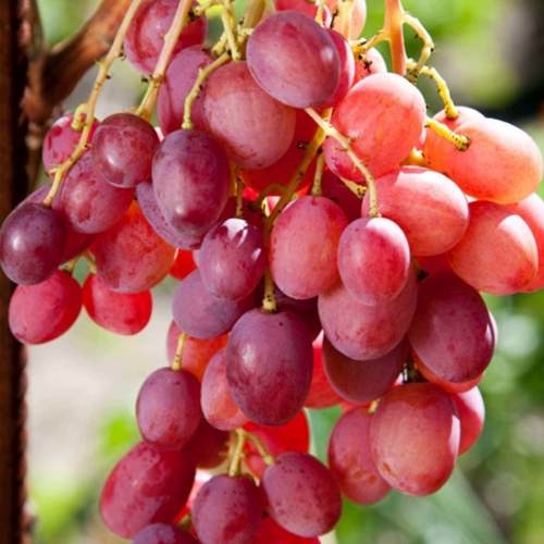 Грозди большие, конические или цилиндроконические, иногда ветвистые, рыхлые и средней плотности. Их вес достигает 700–1200 г и более. Ягоды крупные, овальные, средней массой около 14,6 г, с ярко-розово-красной кожицей. Мякоть мясисто-сочная, с тонким мускатным ароматом, который особенно раскрывается в свежих ягодах и соке.